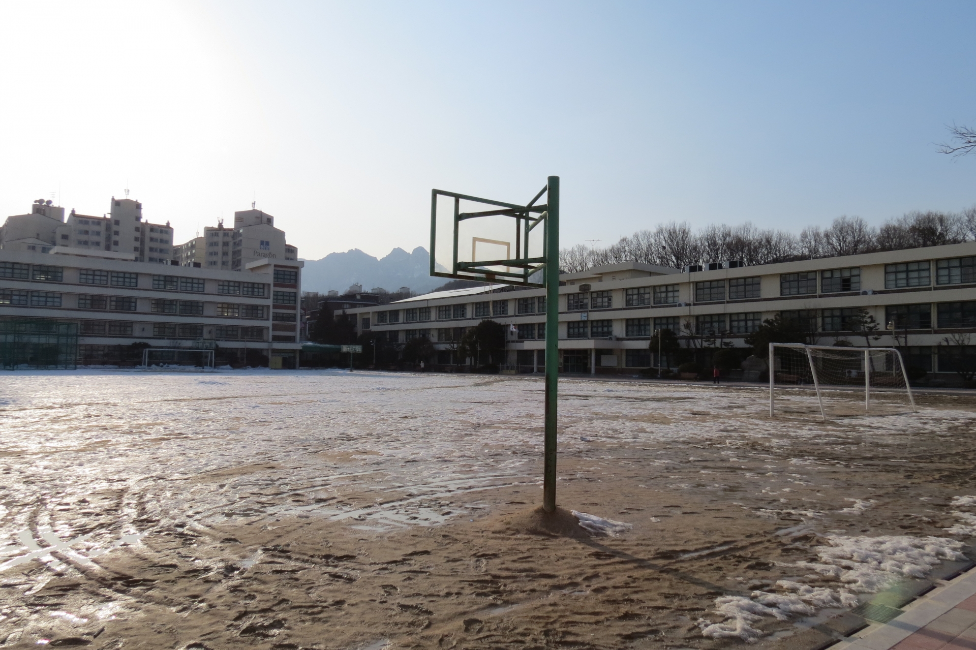 高校の中庭をひとりぼっちで歩きながら、